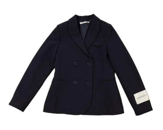 Giacca doppiopetto, taschino con patta, chiusura con bottoni.