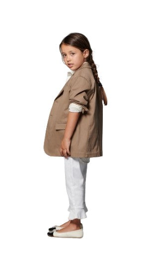 Giacca monopetto in canvas di cotone, chiusura anteriore con i bottoni, tasche con le patte, logo stampato sul retro.