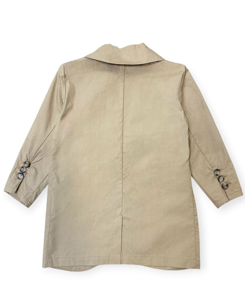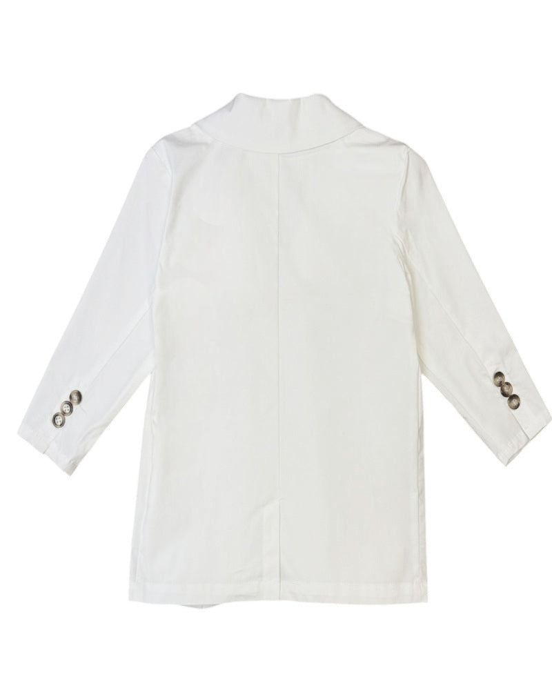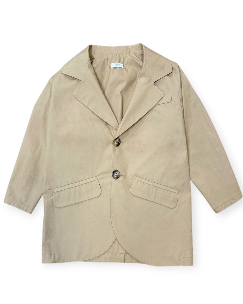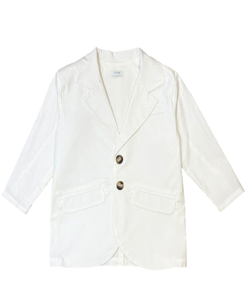Giacca monopetto elegante e sofisticata, realizzata in popeline di cotone per un comfort e una freschezza ottimali. Il modello a maniche lunghe con colletto a revers aggiunge un tocco di classe e raffinatezza, mentre la chiusura frontale con bottoni dona un aspetto pulito e ordinato. Le tasche decorative sulla parte anteriore completano il design, conferendo un ulteriore dettaglio di stile. Perfetta per occasioni formali o per aggiungere un tocco di eleganza a look più casual.