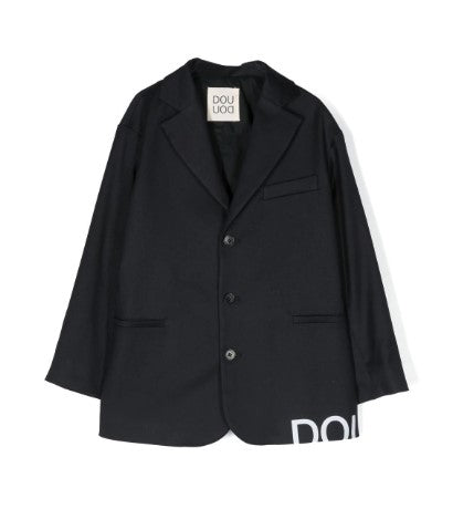 Giacca over monopetto, tasche sul davanti, logo stampato.