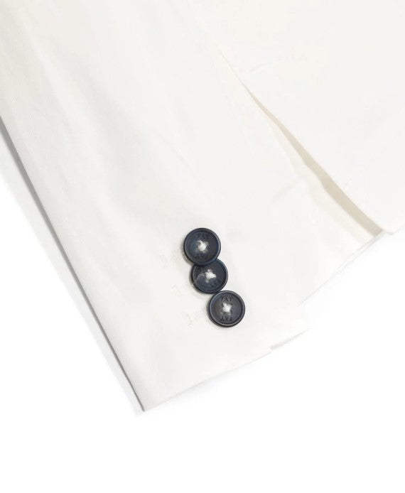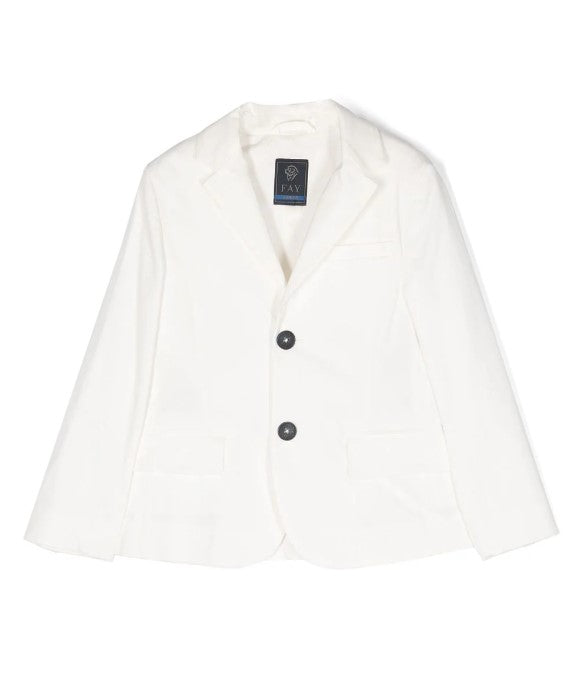 Giacca modello monopetto, chiusura anteriore con bottoni, tasche con le patte frontali.