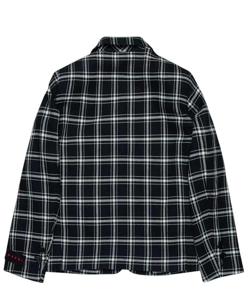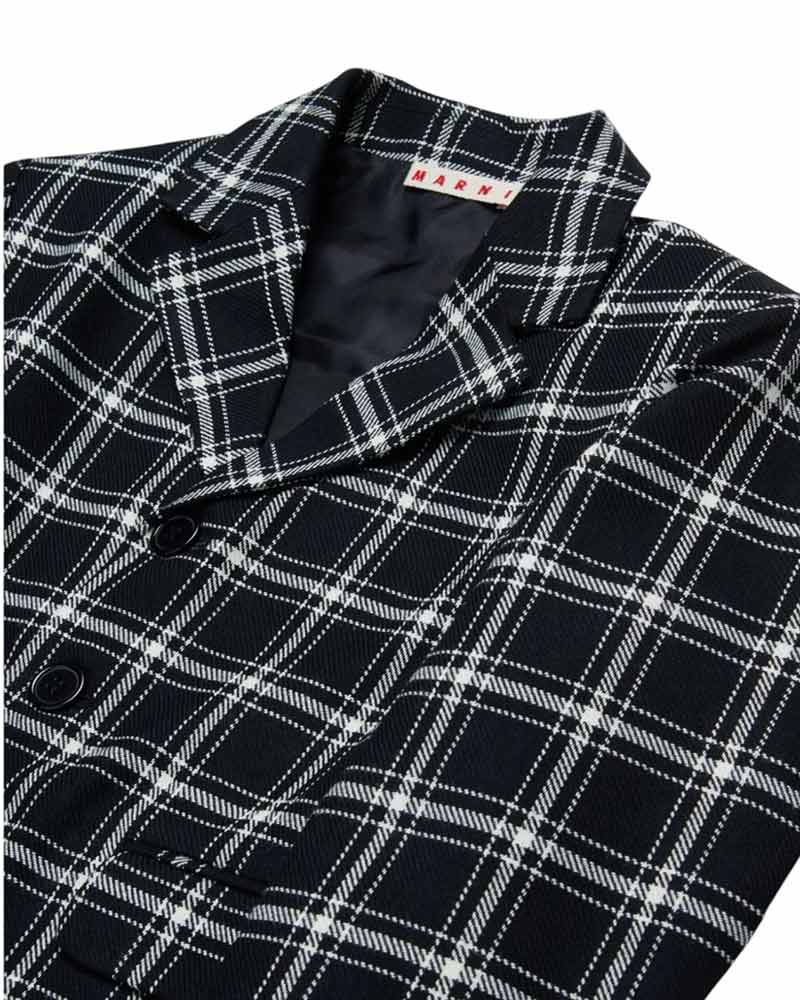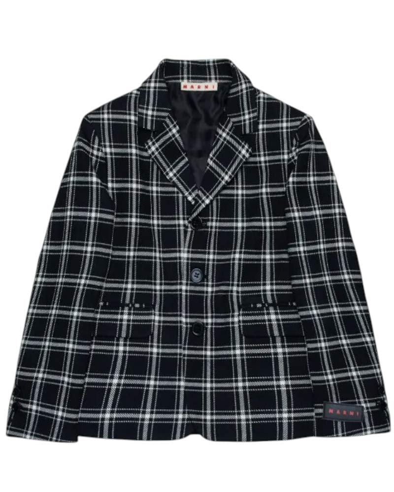 Giacca monopetto realizzata in misto lana da bambino. Presenta collo a revers, chiusura frontale con bottoni, maniche lunghe e due tasche con patta sul davanti. È decorata con patch logo applicata sulla manica.