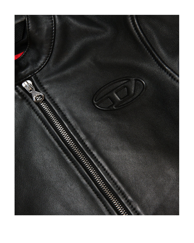 Giubbino biker a maniche lunghe in vera pelle. Presenta l'iconico logo Oval D in rilievo sul davanti lato cuore. Chiusura frontale con zip e bottone sul collo. Cerniere sulle tasche anteriori e sui polsini. Fodera interna in viscosa.