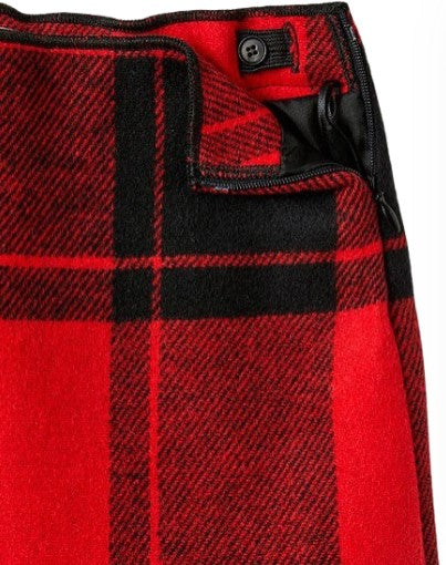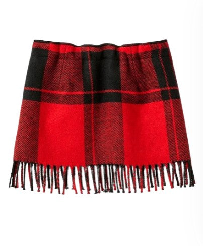 Gonna in lana da bambina, fantasia a quadri, chiusura laterale con zip, orlo dritto con frange.