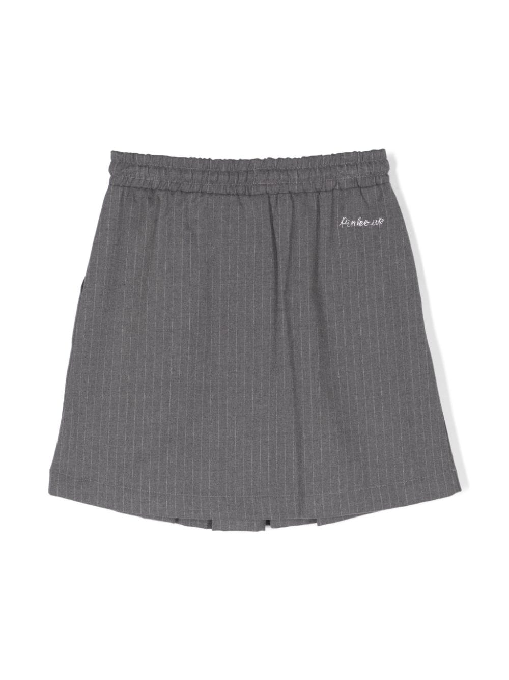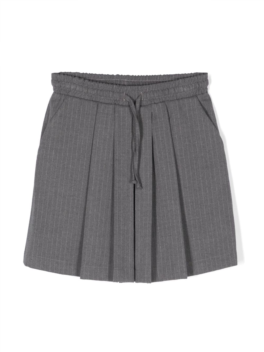 Gonna a pieghe in panno da bambina, elastico e coulisse in vita, tasche laterali america, ricamo logo sul retro.