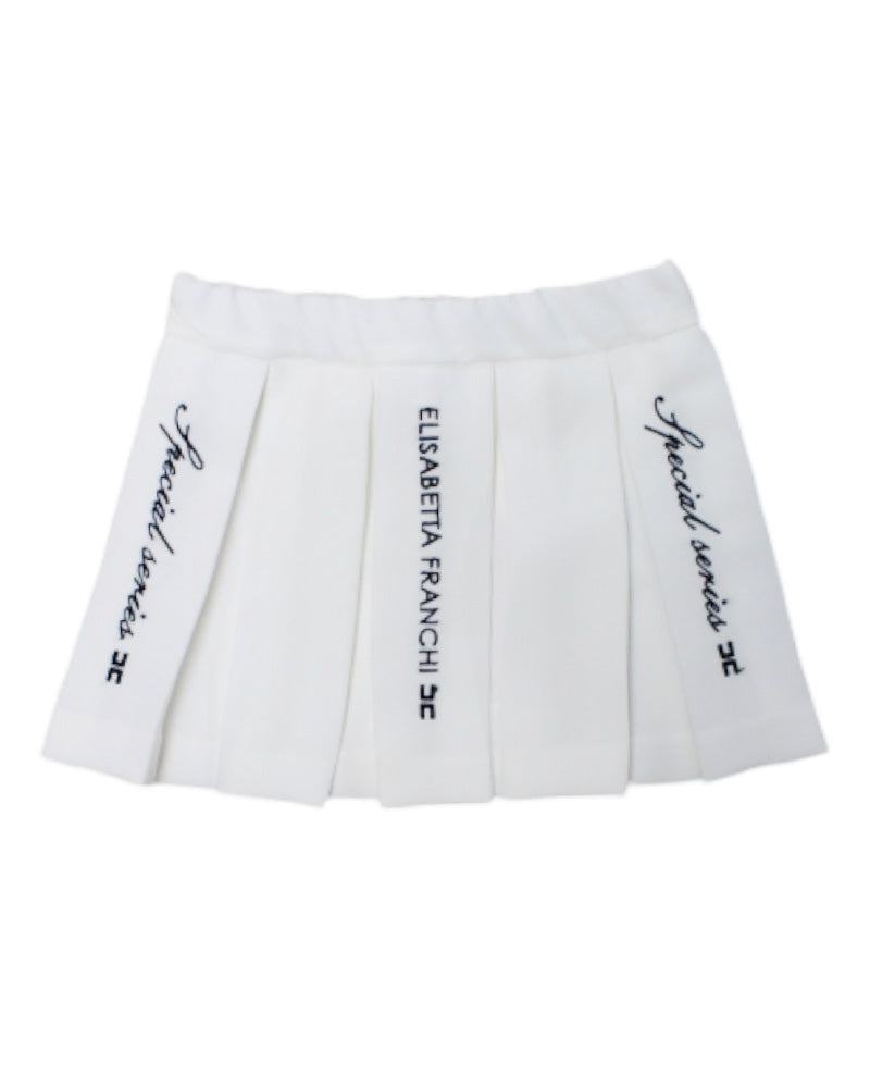 Questa gonna Elisabetta Franchi è realizzata in morbida viscosa e presenta una vita elasticizzata per un comfort ottimale. Il logo e il simbolo ricamato in contrasto aggiungono un tocco di stile al davanti. Ideale per un look elegante e raffinato.