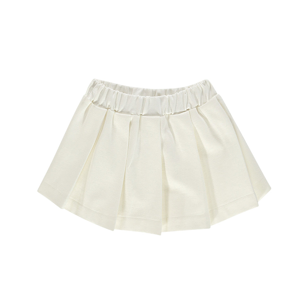 Gonna a pieghe realizzata in tessuto punto Milano con vita elasticizzata.