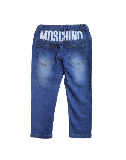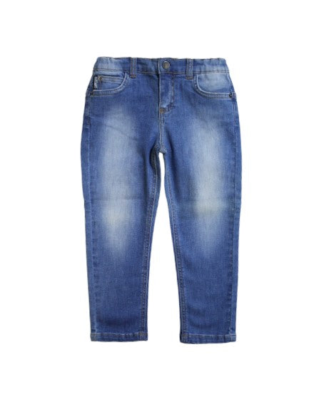 Jeans in denim stretch, modello cinque tasche. Chiusura con bottone e zip nascosta. Logo stampato sul retro.