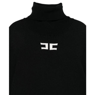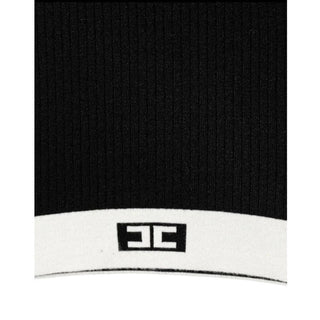 Elisabetta Franchi Maglia Lupetto nero a costine con logo EFMA176.C