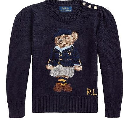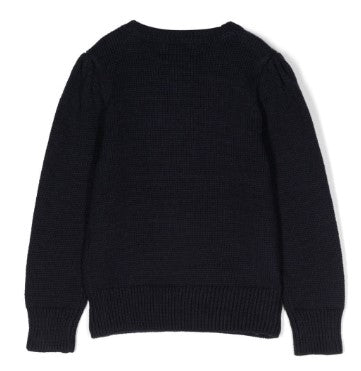 Maglia girocollo, logo e orso ricamato, spalla arricciata, bottoni sulla spalla..