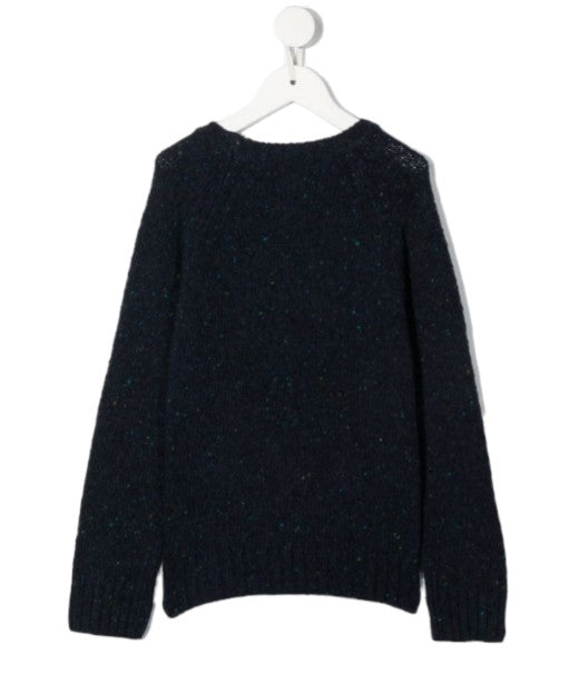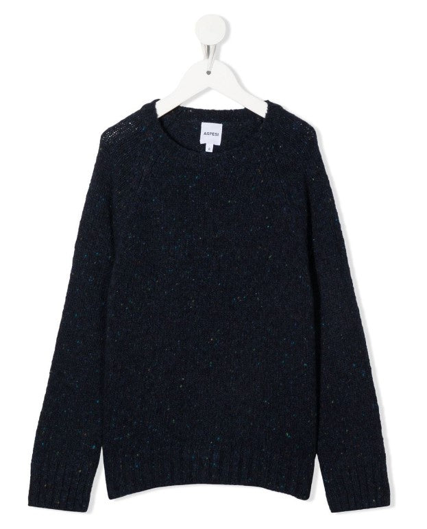 Maglia girocollo in lana con collo, orlo e polsi in costa, tessuto effetto vintage.