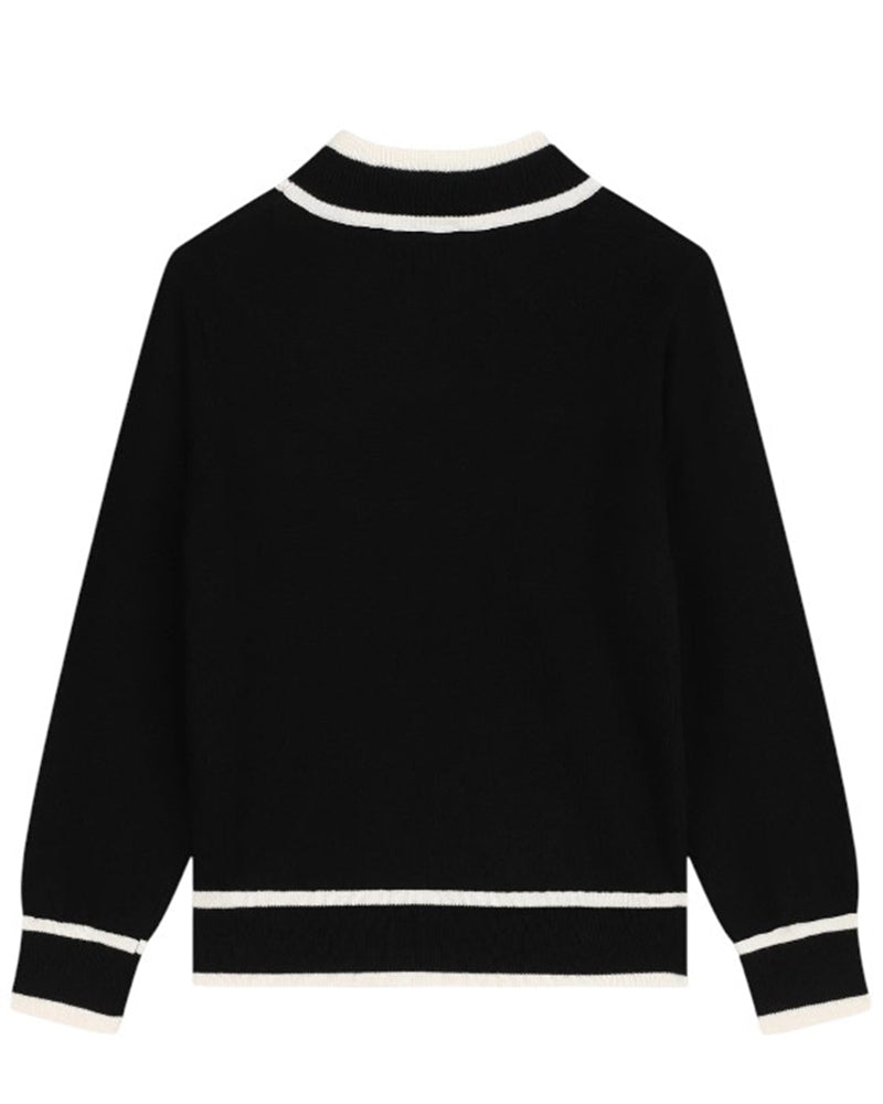 Maglia da bambina realizzata in misto cotone e cashmere. Presenta colletto tondo, maniche lunghe e finiture a coste. È decorata con logo ricamato sulla parte anteriore.