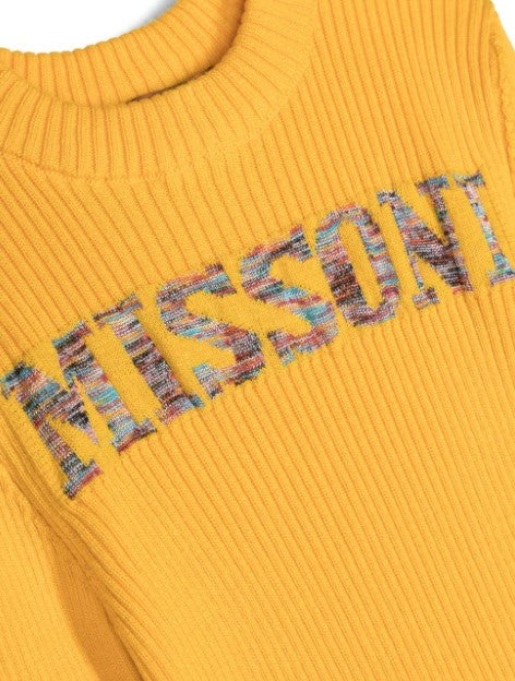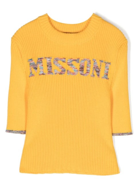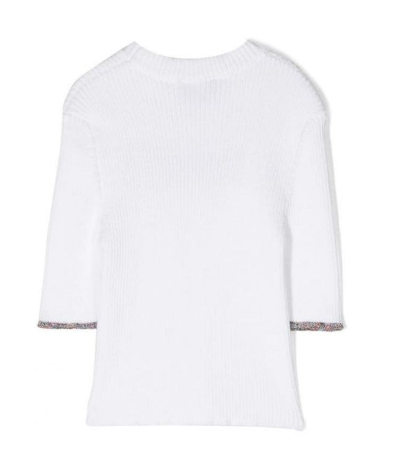 Maglia girocollo a costine, manica a tre quarti, logo ricamato sul davanti.