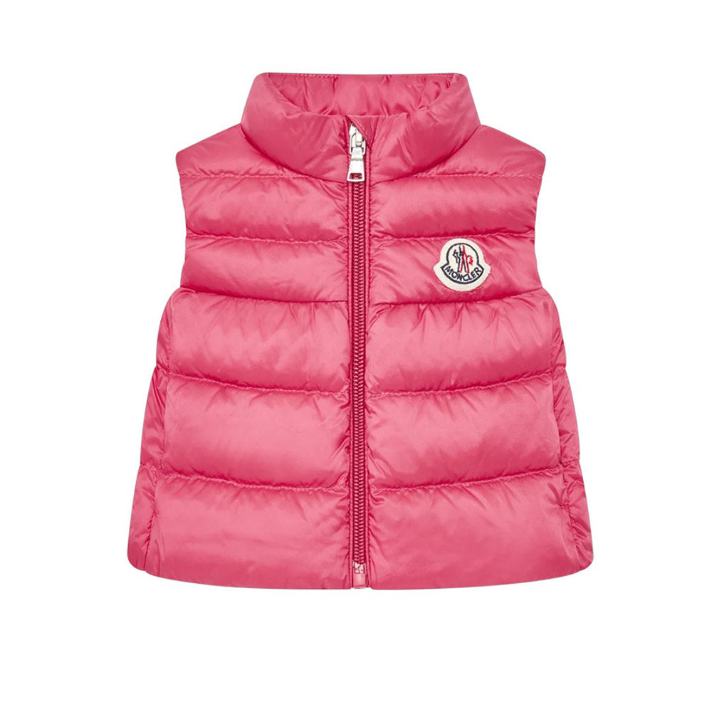 Smanicato 100 grammi Hiva da neonata, realizzato in nylon. Presenta design trapuntato, colletto tondo, chiusura frontale con zip, due tasche laterali a filetto e orlo dritto. È decorato con patch logo applicata sul petto.