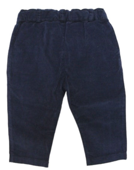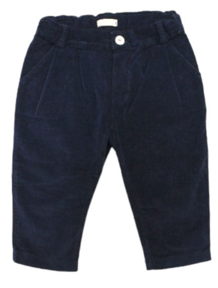 Pantalone con le penches, elastico in vita, tasca america, modello cinque tasche, bottone di chiusura.