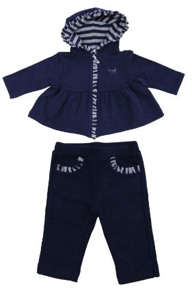 Completo formato da felpa con zip e cappuccio, pantalone con elastico in vita.