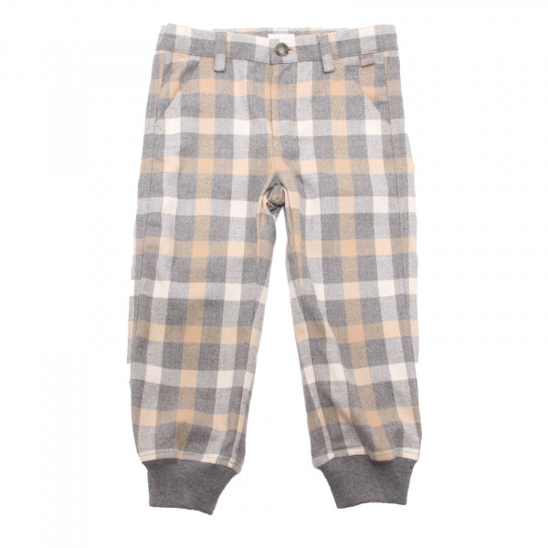 Pantalone fantasia a quadri, elastico in vita e alla caviglia.