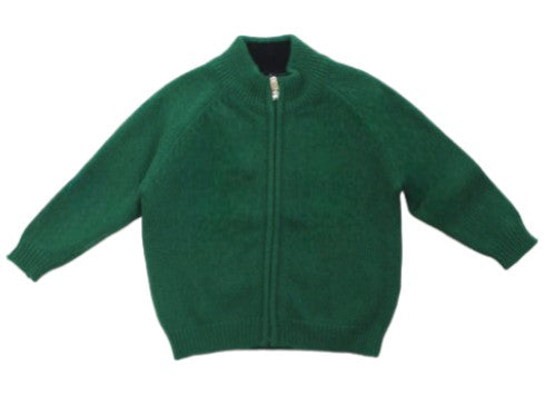 Maglia cardigan in lana, chiusura con zip, toppe sulle maniche.