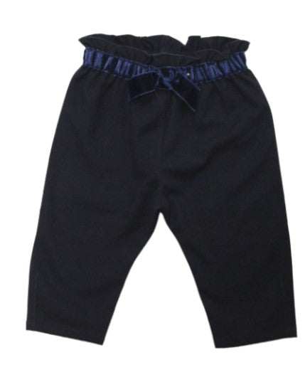 Pantalone in lana, elastico in vita, fiocco in velluto.