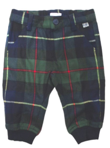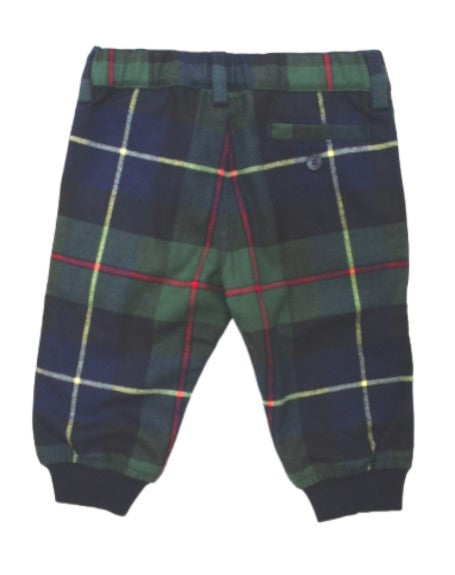 Pantalone fantasia a quadri, elastico in vita e alla caviglia.