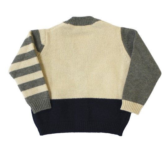 Maglia cardigan in lana, con inserti colorati, bottoncini di chiusura.