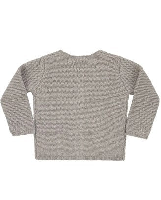 Maglia cardigan in lana, chiusura con bottoncini, tasche applicate.