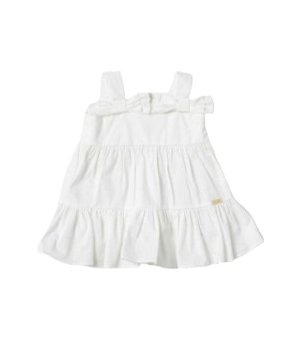 Vestina neonata a balze con bretelle, chiusura laterale con zip.