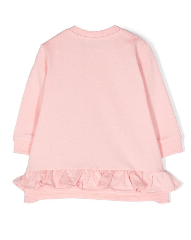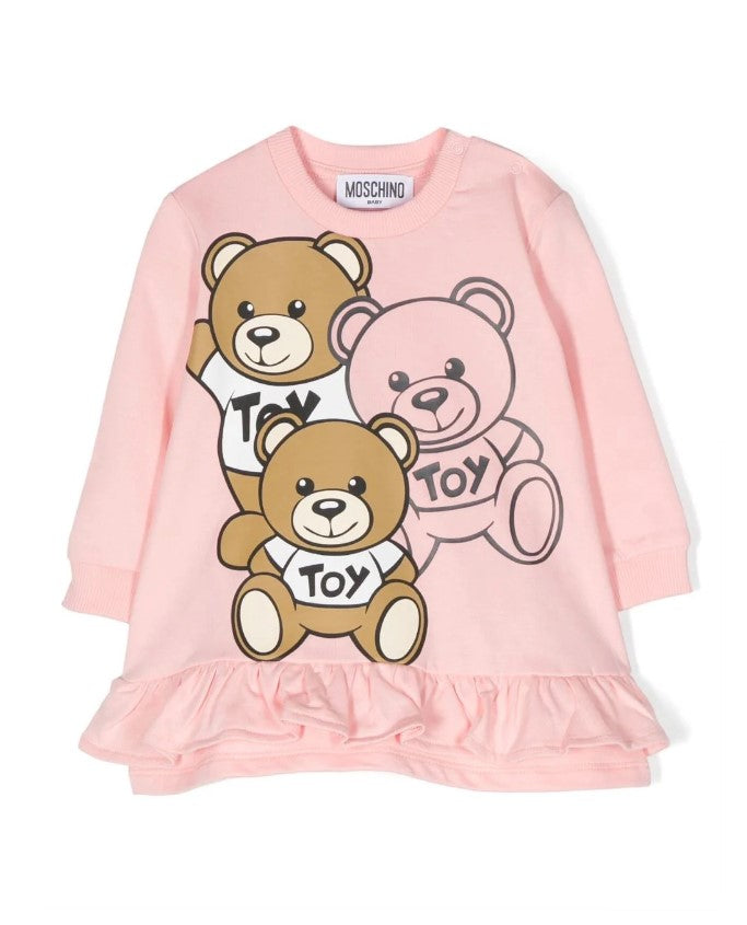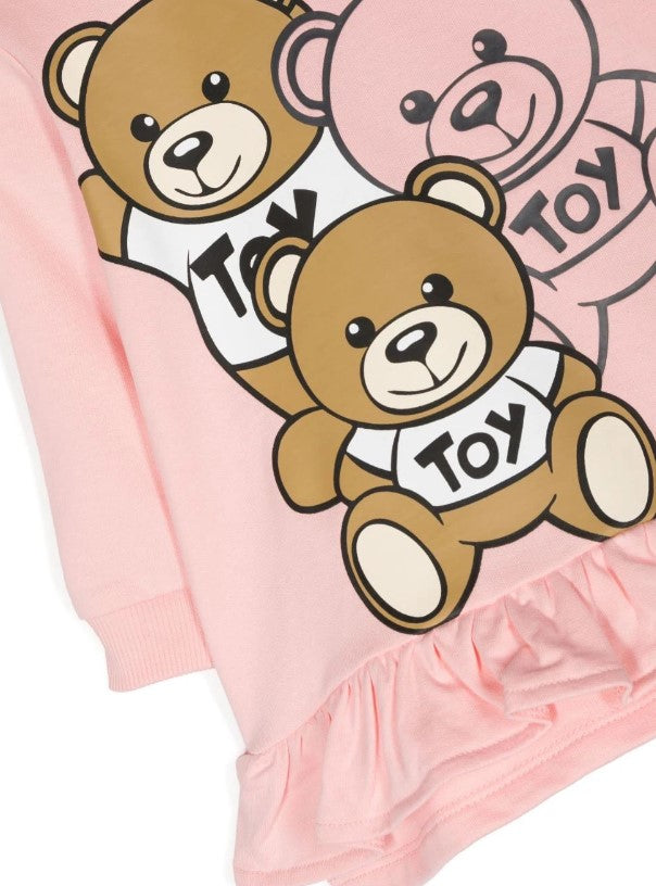 Vestina in felpa di cotone a manica lunga, colletto tondo, stampa Teddy sul davanti, clips di chiusura sulla spallina.