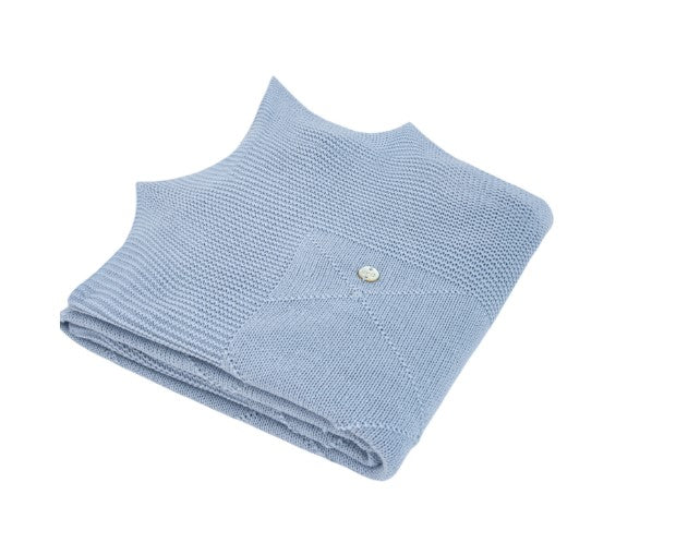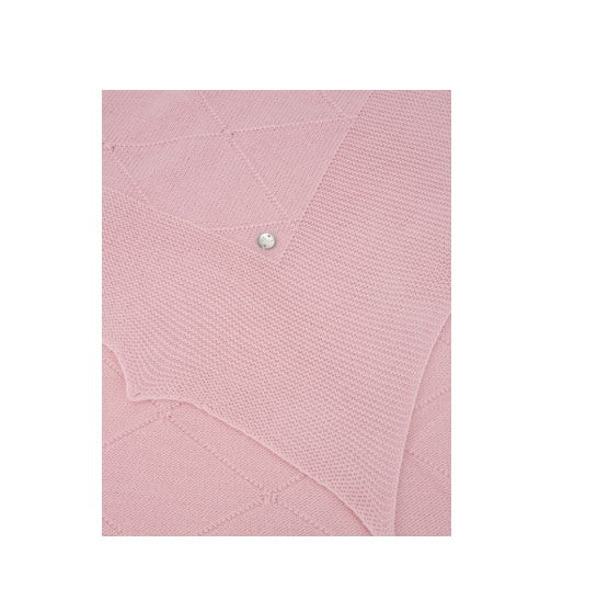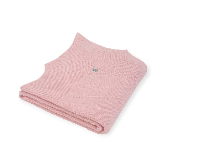 Copertina a maglia con motivo a diamante nel tono, rifinita con picchi. Con dimensioni di 105 x 105 cm, è ideale per tenere il bambino avvolto e caldo tra le braccia fin dai primi giorni
