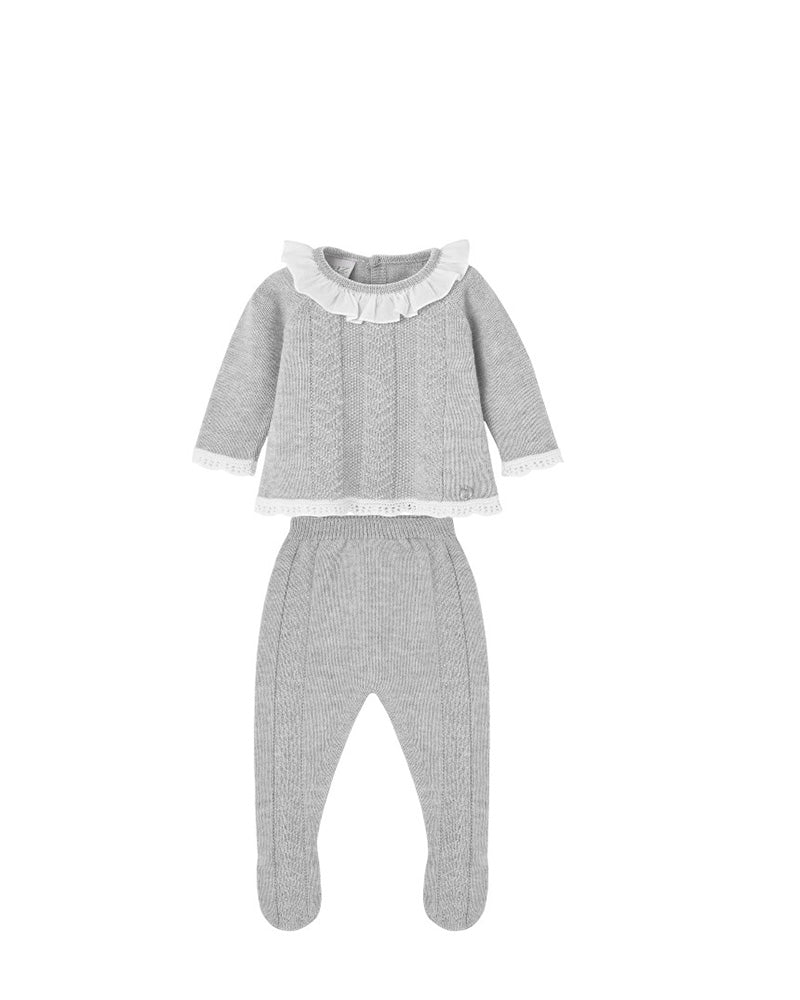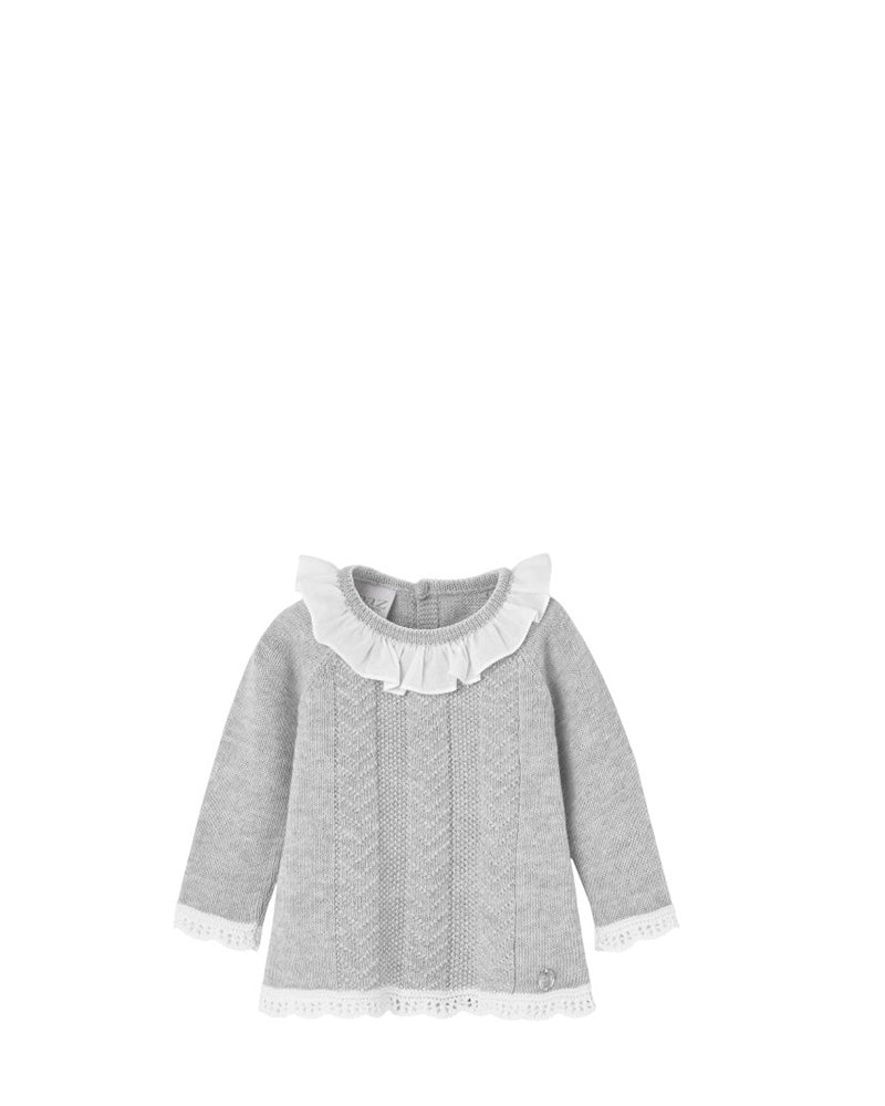 tutina 2 pezzi in lana il sopra maglia collo con rouches fantasia trecce sul davanti e bordini smerlati