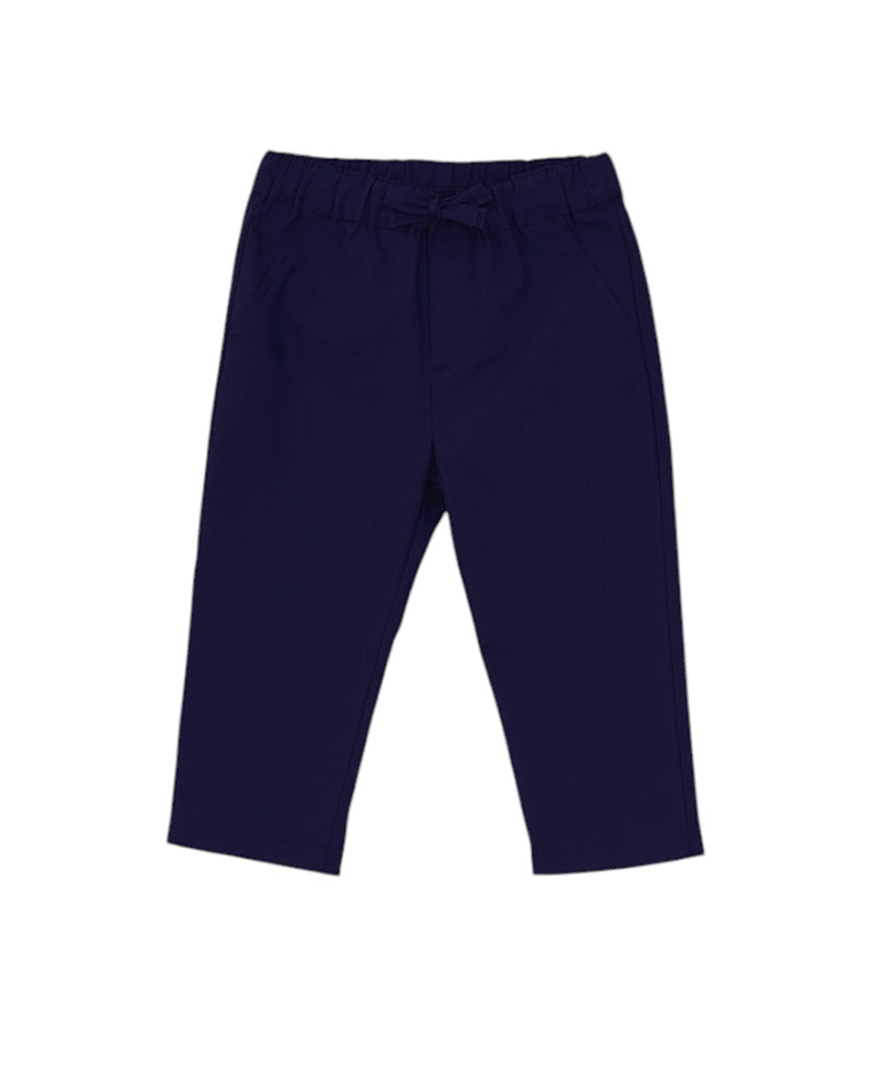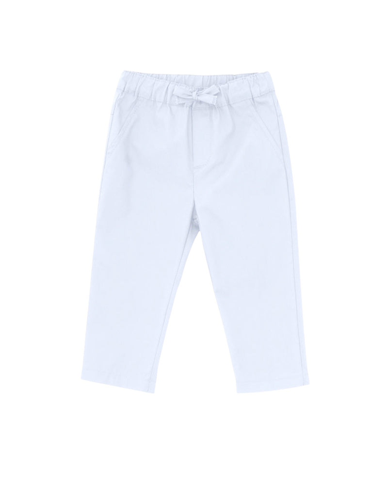 Pantaloni realizzati in cotone, vita elasticizzata, coulisse in vita, tasche laterali.