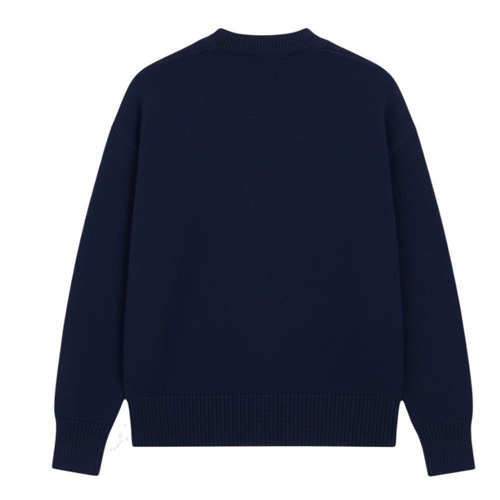 Maglia relaxed fit realizzata in misto lana e cotone. Presenta scollo tondo, maniche lunghe e finiture a coste. È decorata con intarsio Ami de Coeur sul petto.