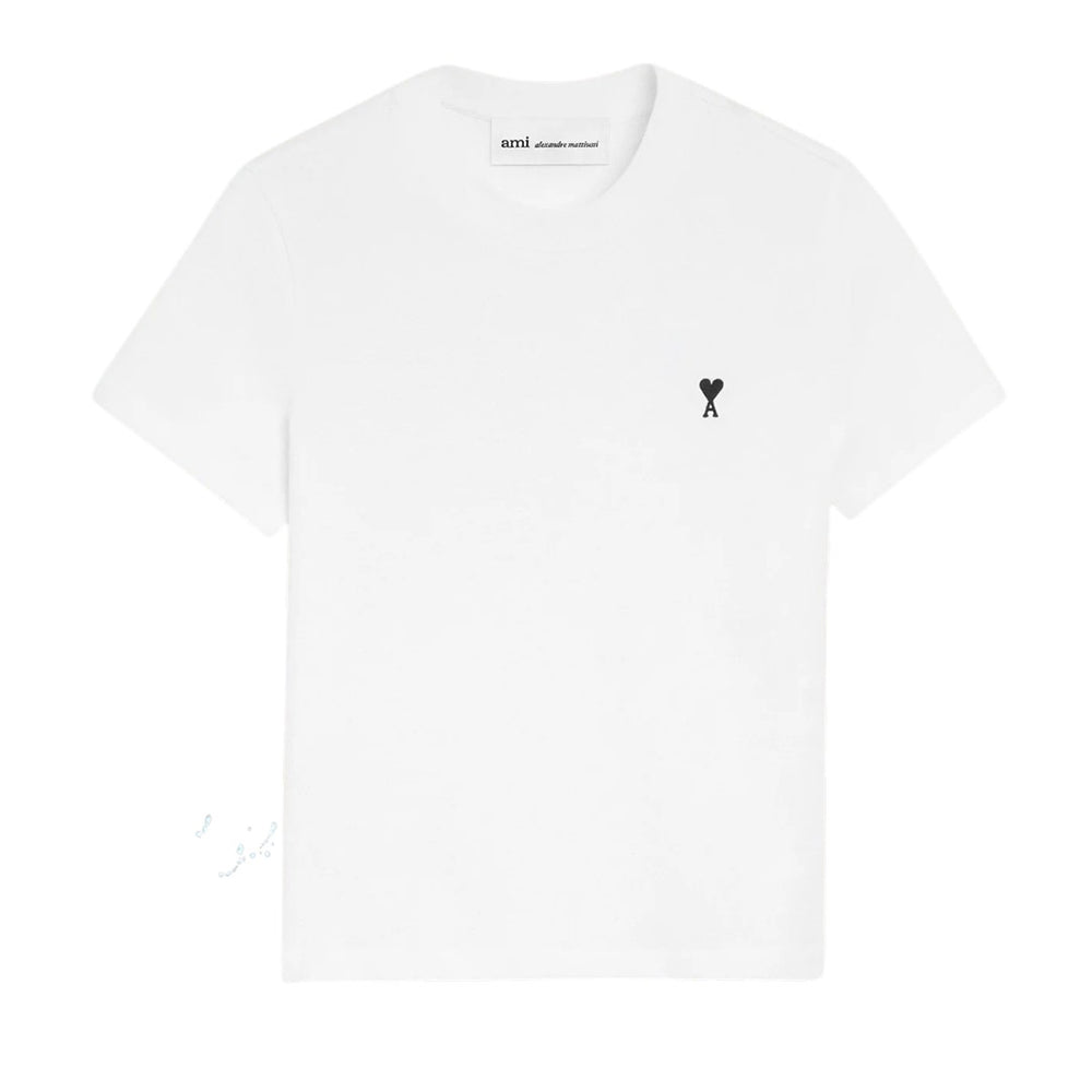 T-shirt aderente realizzata in jersey di cotone, caratterizzata da scollo tondo a costine, maniche corte e orlo dritto. È decorata con ricamo Ami de Coeur sul petto e con ricamo tono su tono sotto lo scollo posteriore.