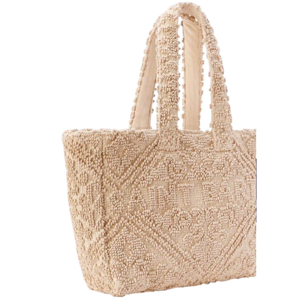 Borsa Tufting realizzata in cotone con lavorazione tufting e struttura morbida. Il motivo ricamato a rilievo dona profondità e carattere al design, valorizzato dal logo sul fronte. Dotata di chiusura superiore con zip e tasca interna portaoggetti, è perfetta per un utilizzo quotidiano dal mood casual e contemporaneo.