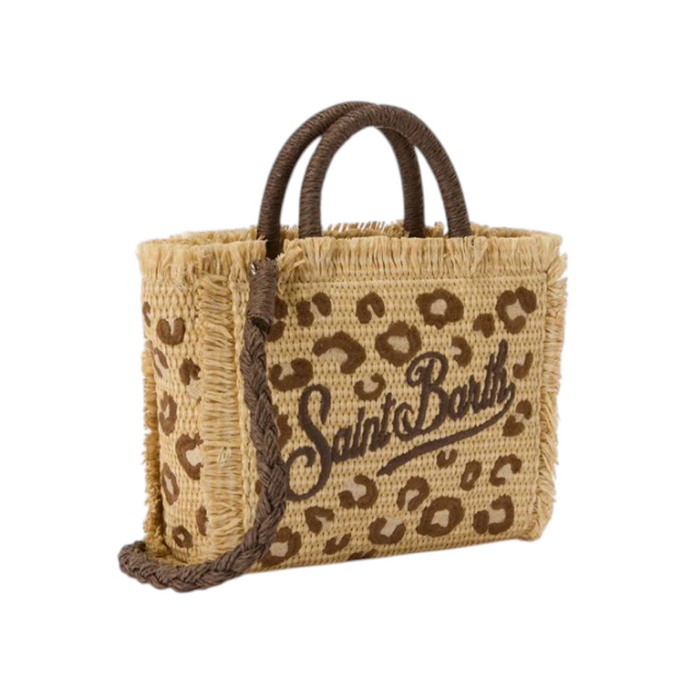 Mc2 Saint Barth Borsa Vanity Mini In Tessuto Effetto Paglia Con Motivo Leopardato VAMI009/00349L