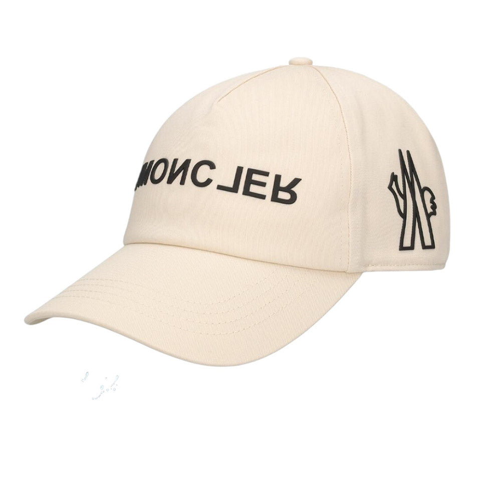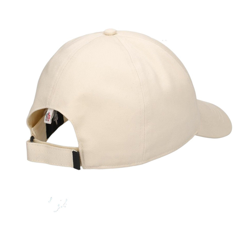 Cappello con visiera in gabardine di cotone Moncler Grenoble con pannelli strutturati e cuciture tono su tono. Chiusura regolabile con velcro sul retro. È decorato con logo applicato in gomma sul davanti e sul lato.