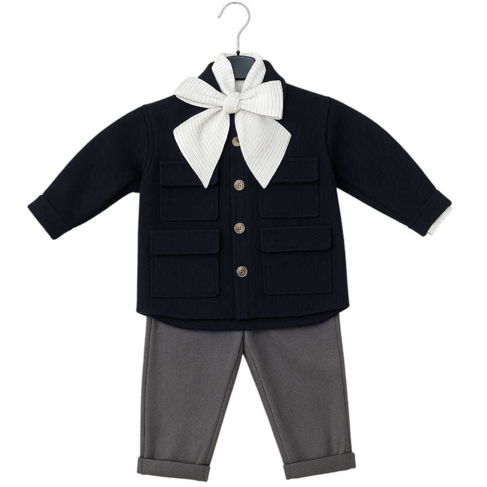 Giacca realizzata in misto lana, caratterizzata da colletto a punta, chiusura frontale con bottoni, maniche lunghe con bottoncini ai polsi, quattro tasche con patta applicate sul davanti e orlo curvo.