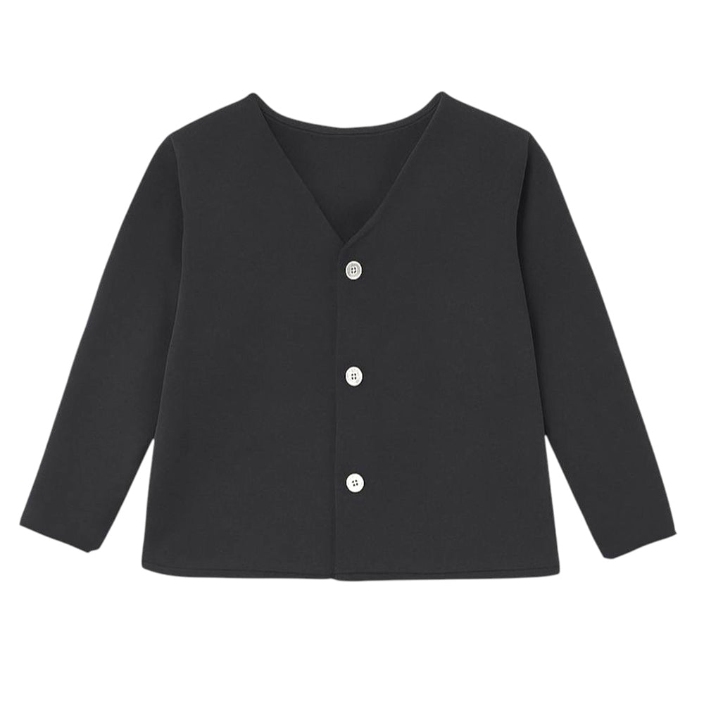 Felpa realizzata in cotone garzato, caratterizzata da collo rotondo, chiusura frontale con bottoni e orlo dritto.