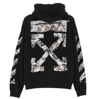 Off-White Felpa nera con cappuccio e logo OMBB085F25FLE00E1001