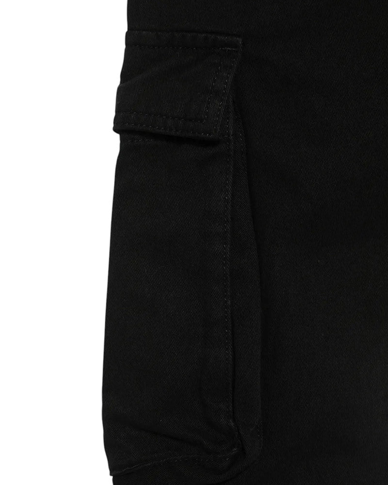 Pantaloni cargo da bambina realizzati in cotone. Presentano chiusura frontale con bottoni e zip, cinturino in vita, vita regolabile grazie ad elastico interno con bottoni, tasche laterali a filo e tasche cargo sui lati. Sono decorati con placca logata applicata sul retro.