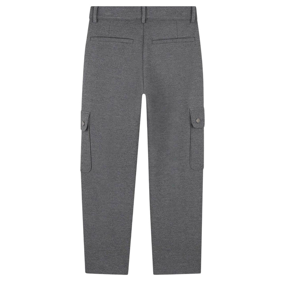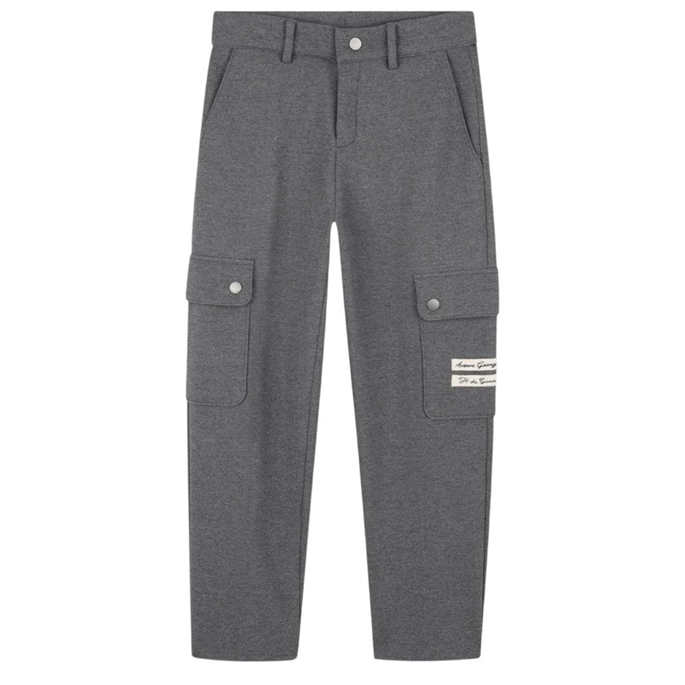 Pantaloni realizzati in misto cotone, caratterizzati da chiusura frontale con bottone a pressione e zip, vita regolabile grazie ad elastico interno con bottoni, passanti per la cintura, due tasche laterali all'americana, tasche cargo sulle gambe e due tasche a filetto sul retro. Sono decorati con patch logo applicata sulla tasca.