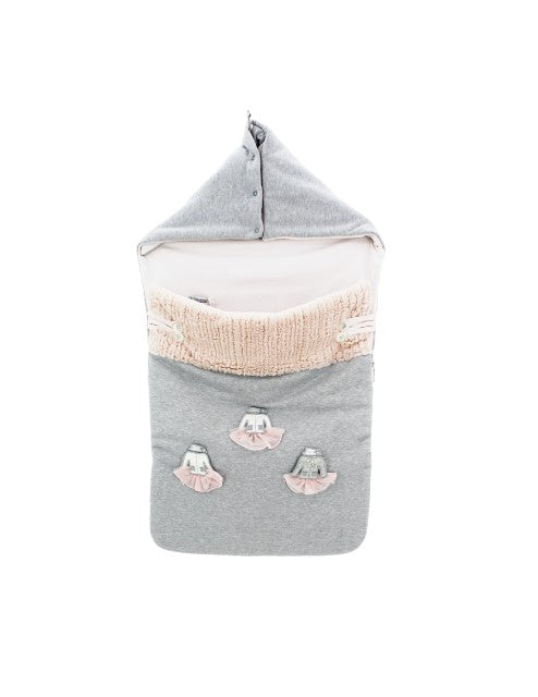 Sacco Nascita La Sartoria Dei Piccoli grigio con dettagli rosa.