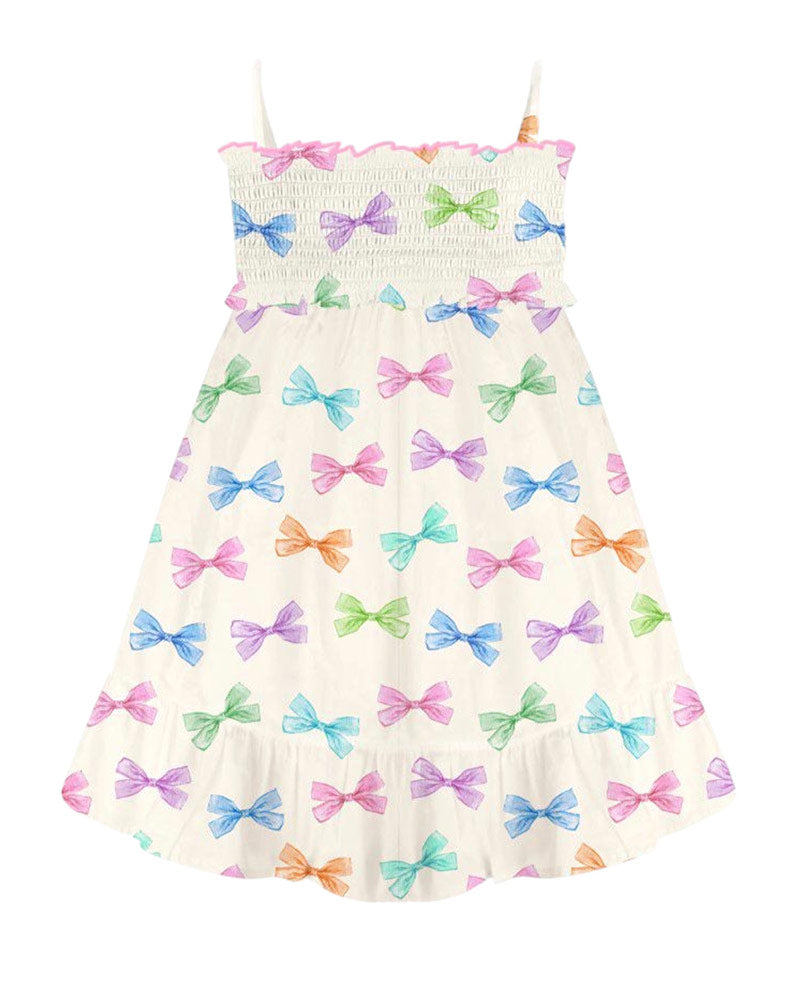Abito Miki realizzato in cotone da bambina. Presenta spalline elasticizzate, corpetto elasticizzato e balza sul fondo. È decorato con stampa Water Bows all-over.
