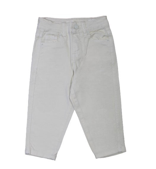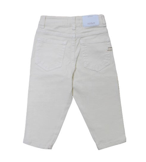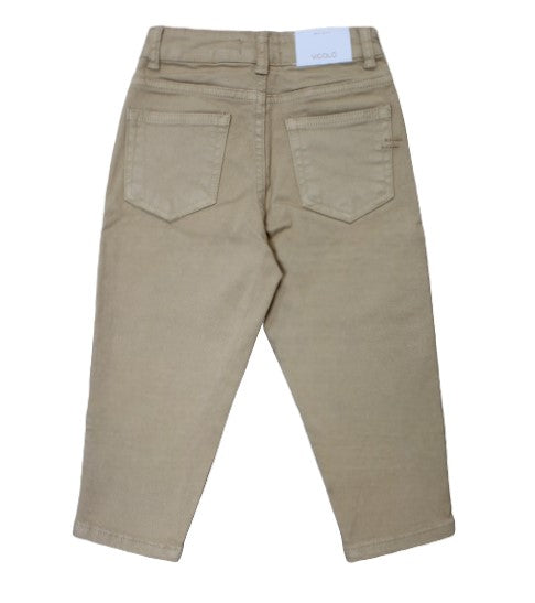Pantalone da bambina mom fit in cotone, modello cinque tasche, chiusura frontale con bottone e zip.