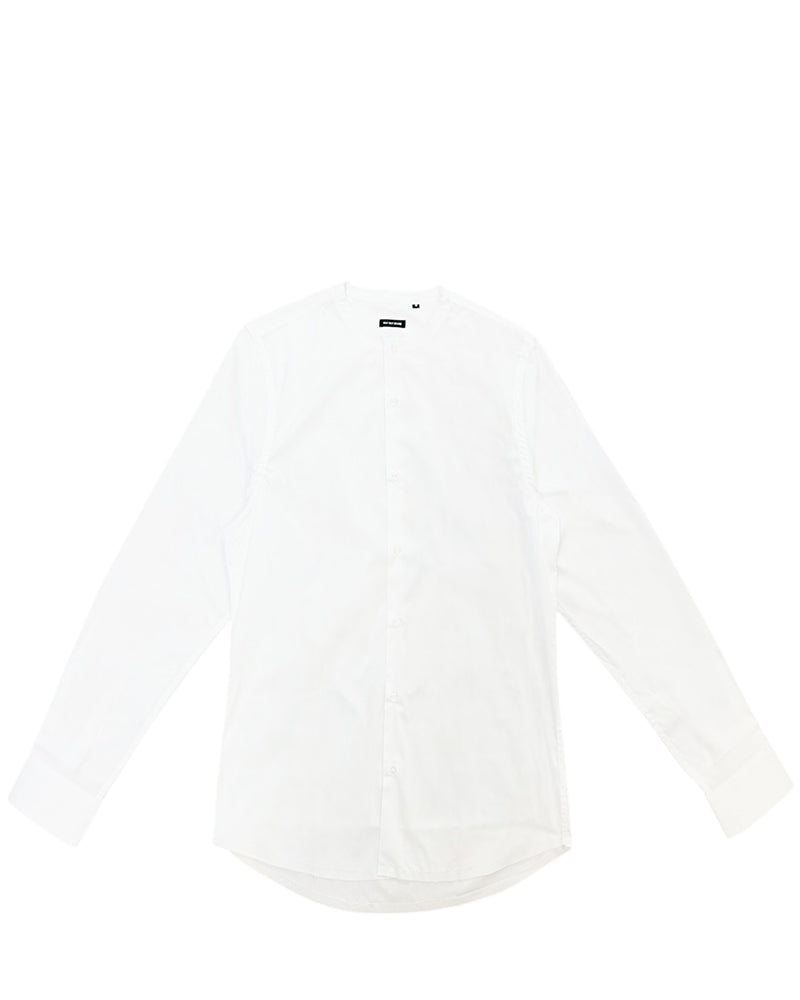 Camicia realizzata in cotone, collo alla coreana, cuciture a taglio vivo, abbottonatura frontale sul davanti.