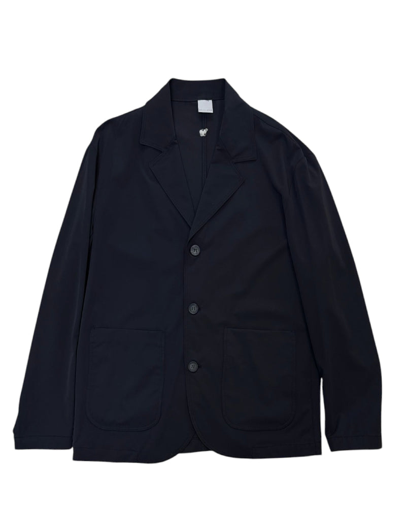 Giacca monopetto in tessuto tecnico, chiusura frontale con bottoni, tasche applicate, finto taschino sul petto, vestibilità over.