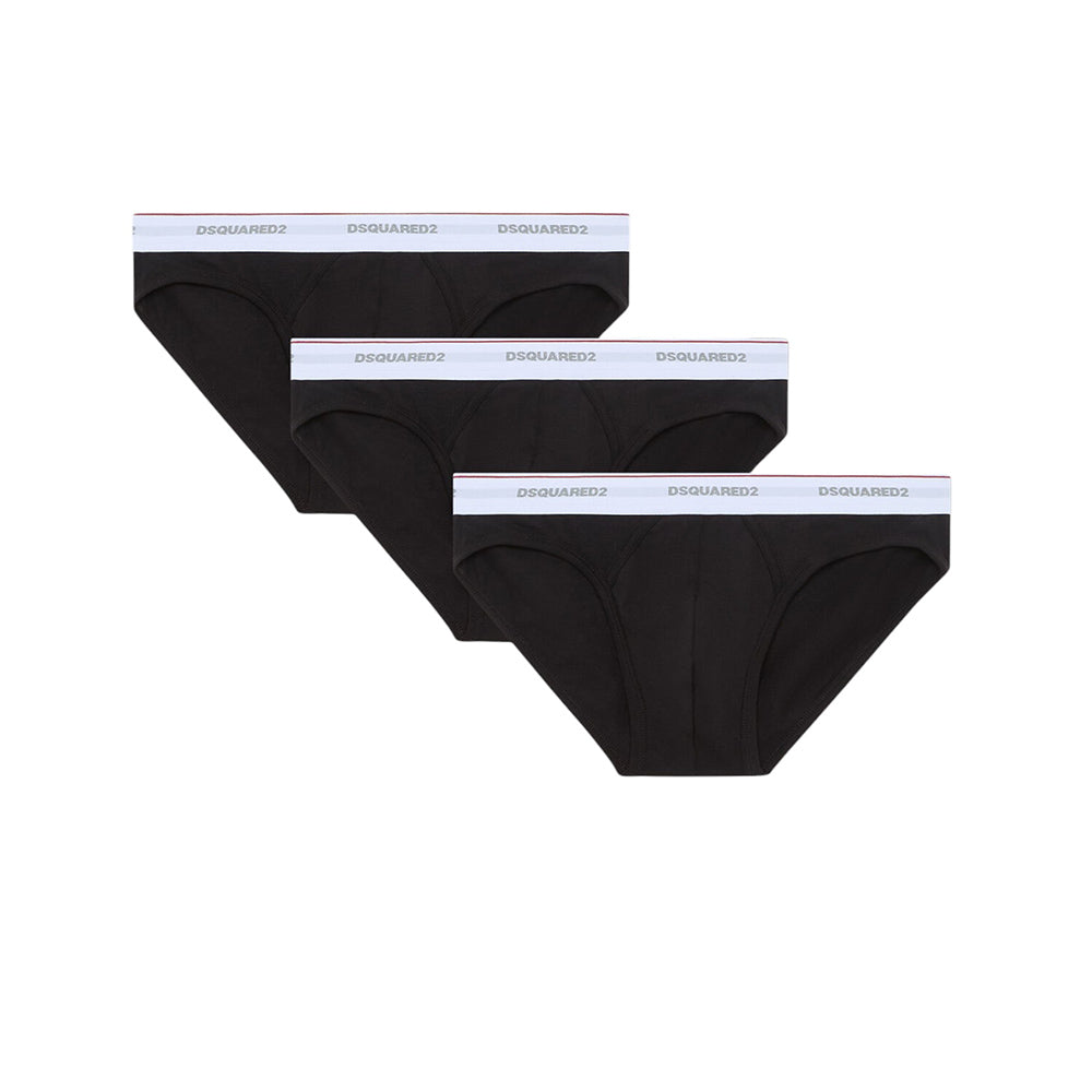 Slip Dsquared2 tripack, la confezione comprende tre pezzi di slip realizzati in cotone leggermente elasticizzato con elastico logato.