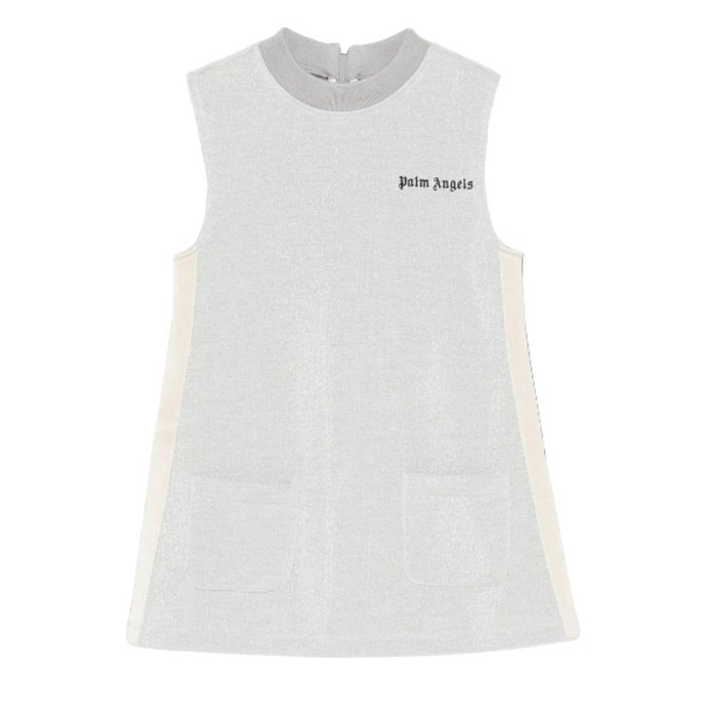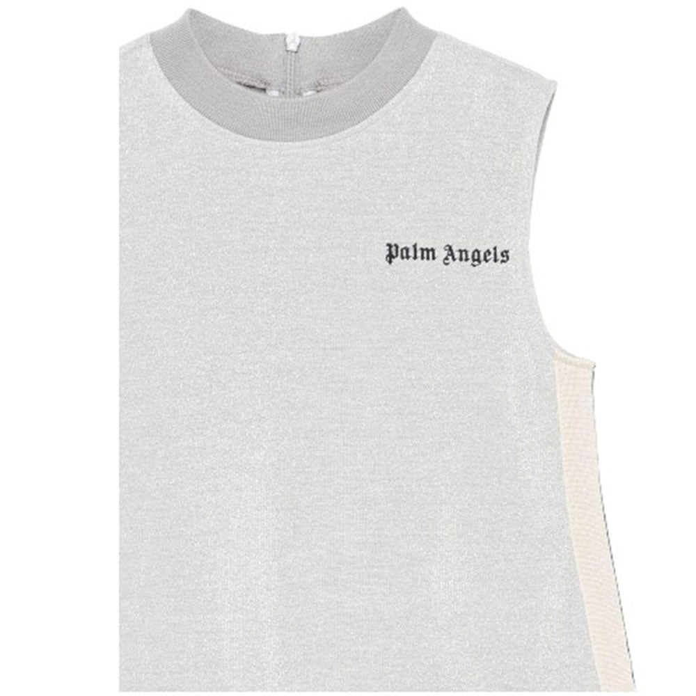 Palm Angels Abito grigio glitterato con logo ricamato PGCM006F25FLE0017210