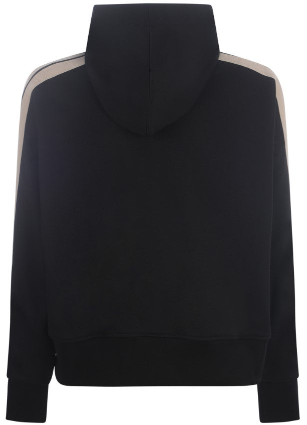 Felpa Palm Angels con logo sul petto, dettagli a righe laterali e chiusura frontale con zip.