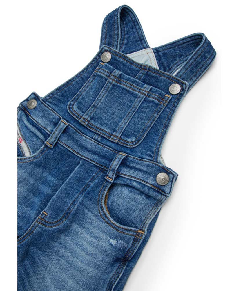 Diesel Salopette in denim blu con abrasioni da neonato K00661-KXBQF